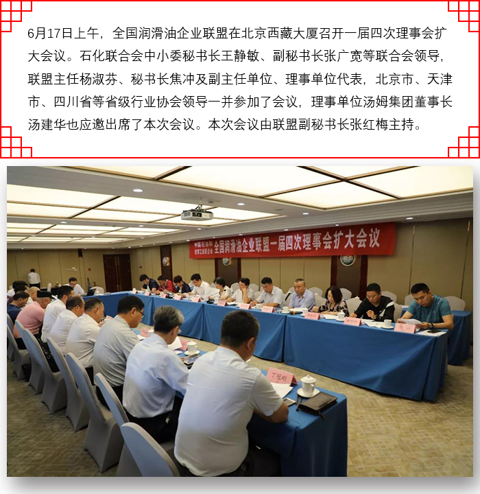 湯姆集團董事長(cháng)湯建華應邀出席全國潤滑油企業(yè)聯(lián)盟一屆四次理事會(huì )!