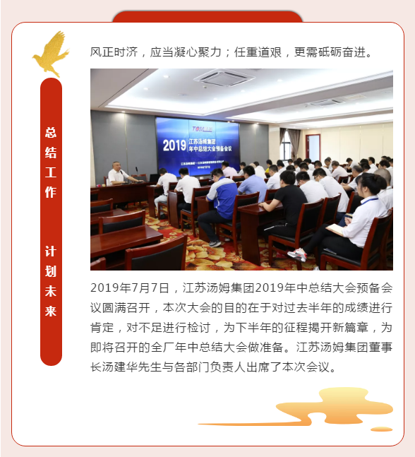 江蘇湯姆集團2019年中總結大會(huì )預備會(huì )議圓滿(mǎn)召開(kāi)丨不忘初心,砥礪前行