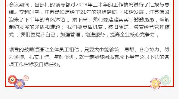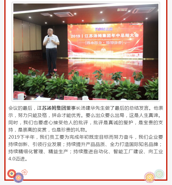 江蘇湯姆集團2019年中總結大會(huì )圓滿(mǎn)落幕|凝心聚力 砥礪前行