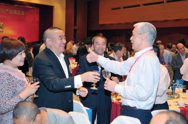 湯建華、湯建定與中國農藥工業(yè)協(xié)會(huì )會(huì )長(cháng)孫叔寶在一起