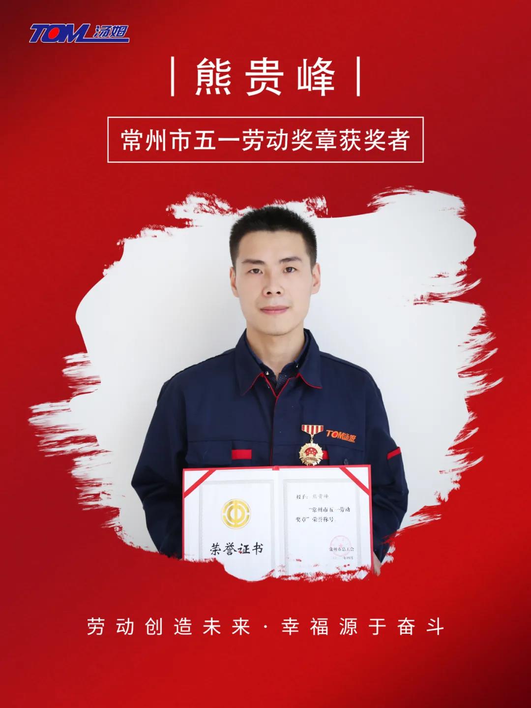 喜訊!湯姆集團熊貴峰榮獲“常州市五一勞動(dòng)獎?wù)隆保?
