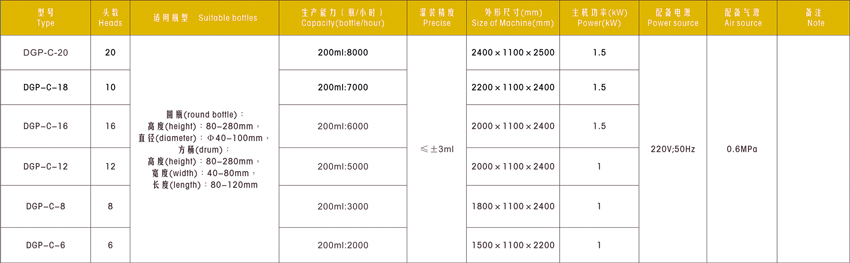 DGP-C直列式常壓灌裝機技術(shù)參數
