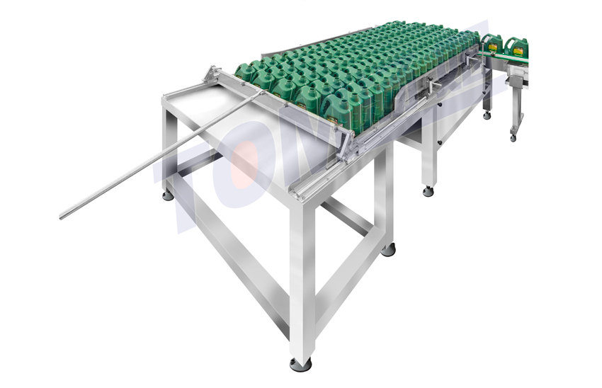 1-4L oil bucket can be loaded on the platform totally and pushed into the belt manually by a push rod. It can arrange the bucket orderly and do not harm the bucket. The electric device is controlled by PLC, photoelectric sensor and variable-frequency governor. It is characterized by its high integration level, strong control ability and stable operation. It can be connected with other packing machines.